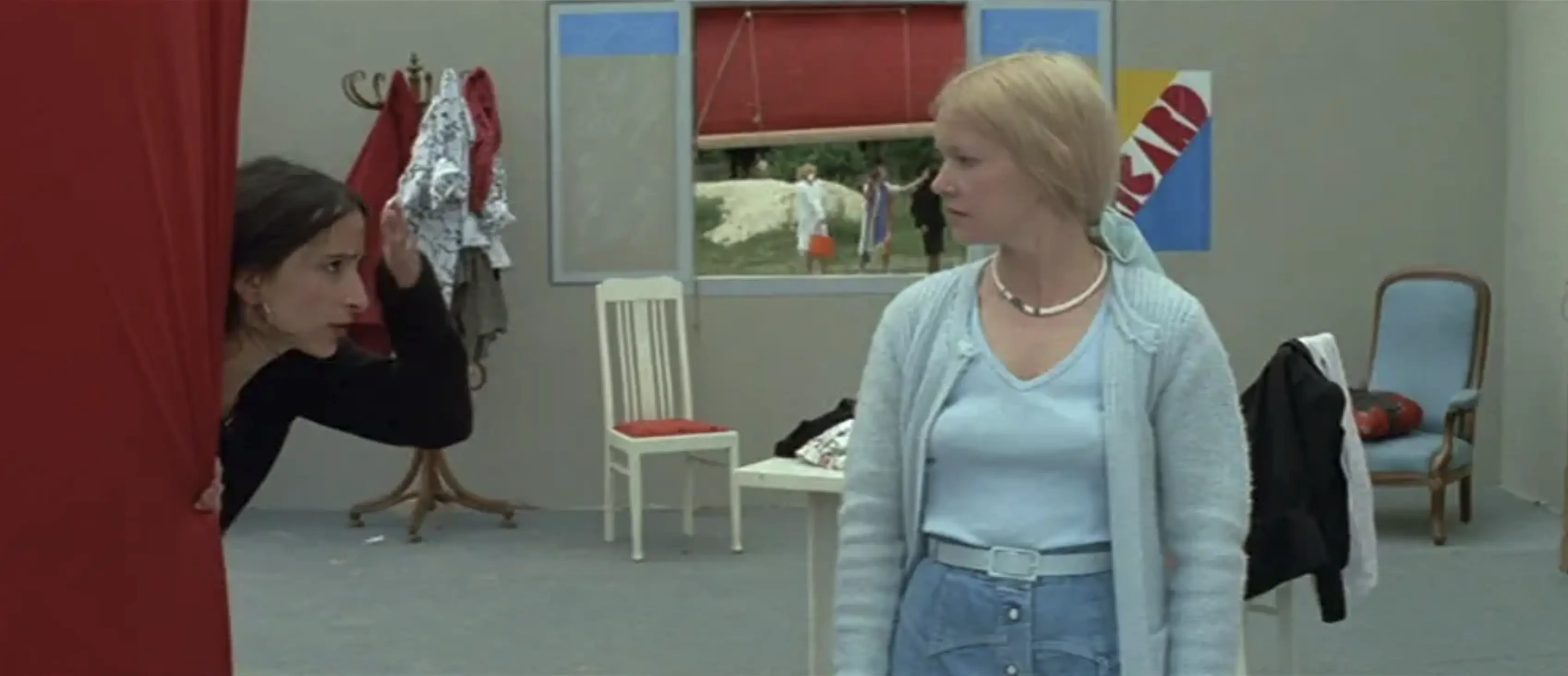 In general, we made films in pairs. Le Théâtre des matières was twinned with La Machine, shot at the same time. […] I needed time to think in the middle of shooting, so I stopped shooting La Machine. I sent the crew and the actors to Biette, he did his three weeks of filming, he gave everything back to me. The handover took place in a bistro where he had been that morning. I spent the afternoon in the same setting with practically the same actors. And Les Belles Manières was followed up with Corps à cœur. […] Rosa [la rose, fille publique] was paired with Beau temps [mais orageux en fin de journée]. Simone Barbès was with Cauchemar. It was always done two by two, because we could hire the technicians for a longer period. [18]