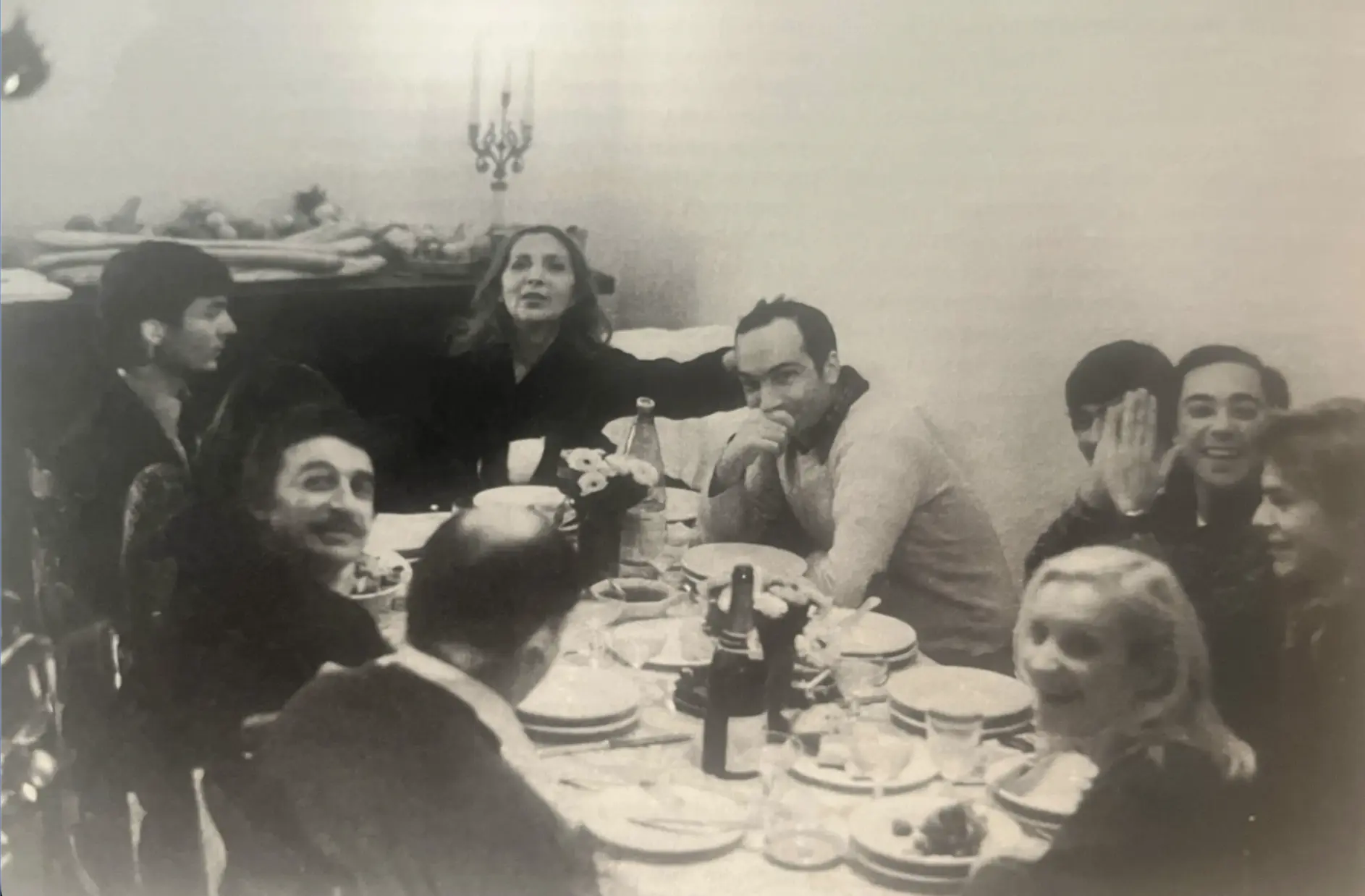 A Diagonale Christmas at Kremlin-Bicêtre, 1977. Around the table, starting from bottom left, are Pierre Bellot, Paul Vecchiali, Jean-Claude Guiguet, Sonia Saviange, Jean-Claude Biette, Emmanuel Lemoine, Guy Gilles, Philippe Chemin, Hélène Surgère