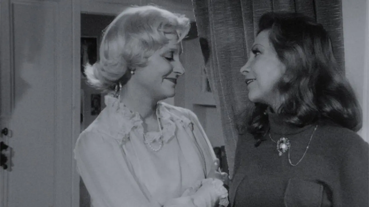 Now, he as well as I find ourselves on this side of a historical situation that confronts us in totally different ways, even if, in the end, they are fundamentally identical, because we belong to two totally different cultures; because the moods, the psychology, the way of choosing characters and the specific references are different. Both of us are seeking to reconstruct a cinema that does not forget the demands of content, and we — he and I — are also perfectly conscious of the social framework in which the characters evolve, and we, as he puts it, fix them onscreen, and offer them to the spectator’s contemplation. We are quite close to each other in this way of fixing characters in their social situation, their way of being humans within a society; at the same time, we are trying not to forget metalinguistic problems, problems of reconstructing a new plasticity. Since some people perhaps did not hear me well, I’ll say it again: for me, Vecchiali’s two characters in this film are two characters by Racine. I repeat that it’s a true minor masterpiece — minor or great, I don’t know — but it’s a masterpiece in the sense that, despite all these demands that threaten to dismantle it, he has succeeded in creating an extremely coherent work, thanks to this marvelous intuition of the relationship between these two women and their relationship to their art. This intuition is made entirely of real things: there is not a single false gesture, not a false or discordant expression, everything that happens onscreen is true, even if it’s not in the realm of banal reality; even if someone suddenly begins to sing, she sings in a way that is so real, so true, it’s so right that she sings at that moment that there is no need to even ask the question.