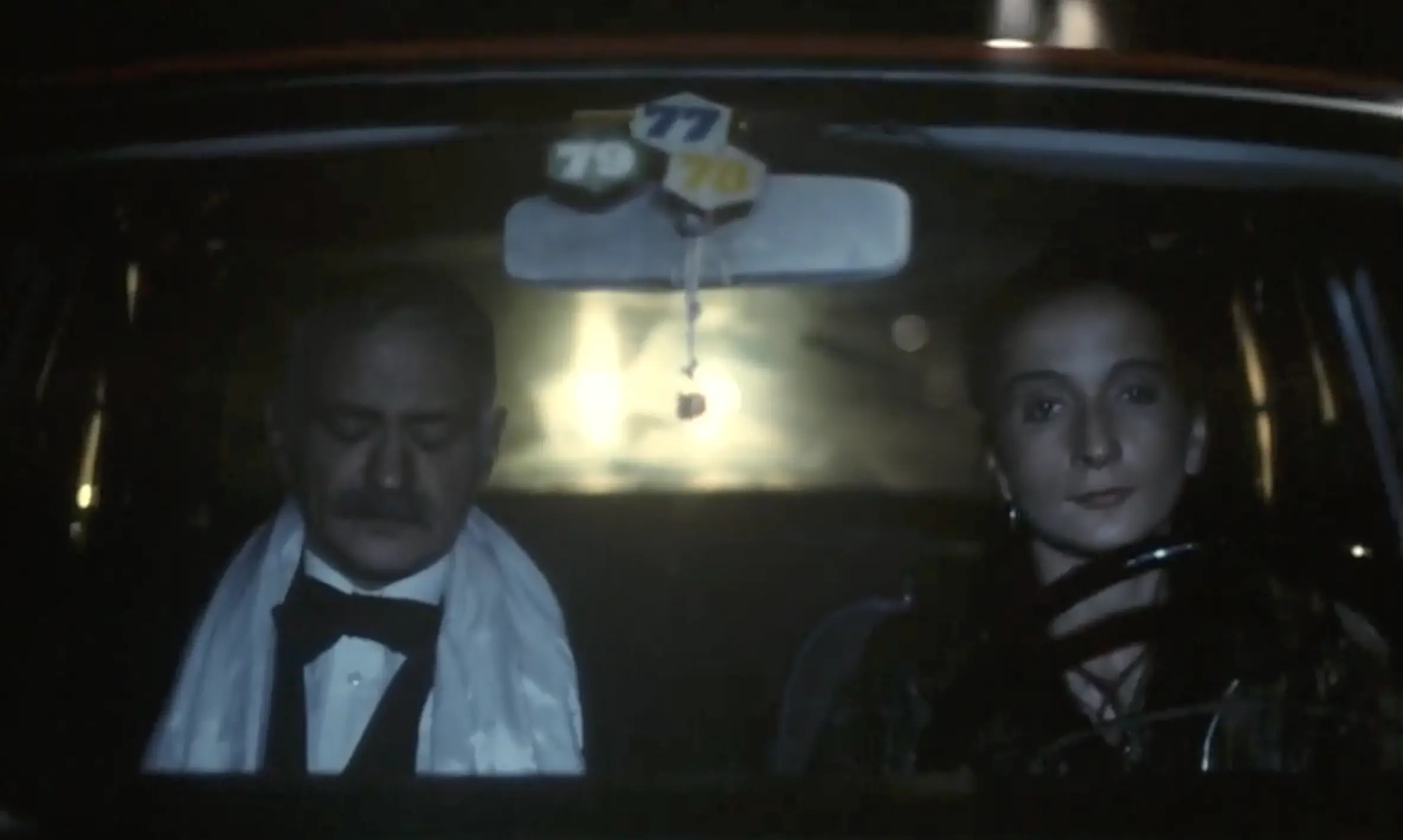 It is, in a sense, an anti-adventure film — not because there’s no strong plot or narrative, but because of the pervasive feeling of repetition throughout. Comparisons to Chantal Akerman are inevitable, particularly Je tu il elle (1974), with its three-act structure, queer female protagonist, and extended car journey with a man; but the most compelling part of the two films’ bedfellowship is that both feel like we are watching an infinite loop, giving the sense that all of this is going to keep happening again and again, forever. This isn’t one night in Simone’s life, this is every night, and though the neon signs for tobacco shops, hotels, pharmacies, and wedding dress outlets flicker on and off at the start, while the streetlights turn off at the end, the sense persists that the conclusion of the film is just a brief interval of costume changes before it all recommences, exactly as before.